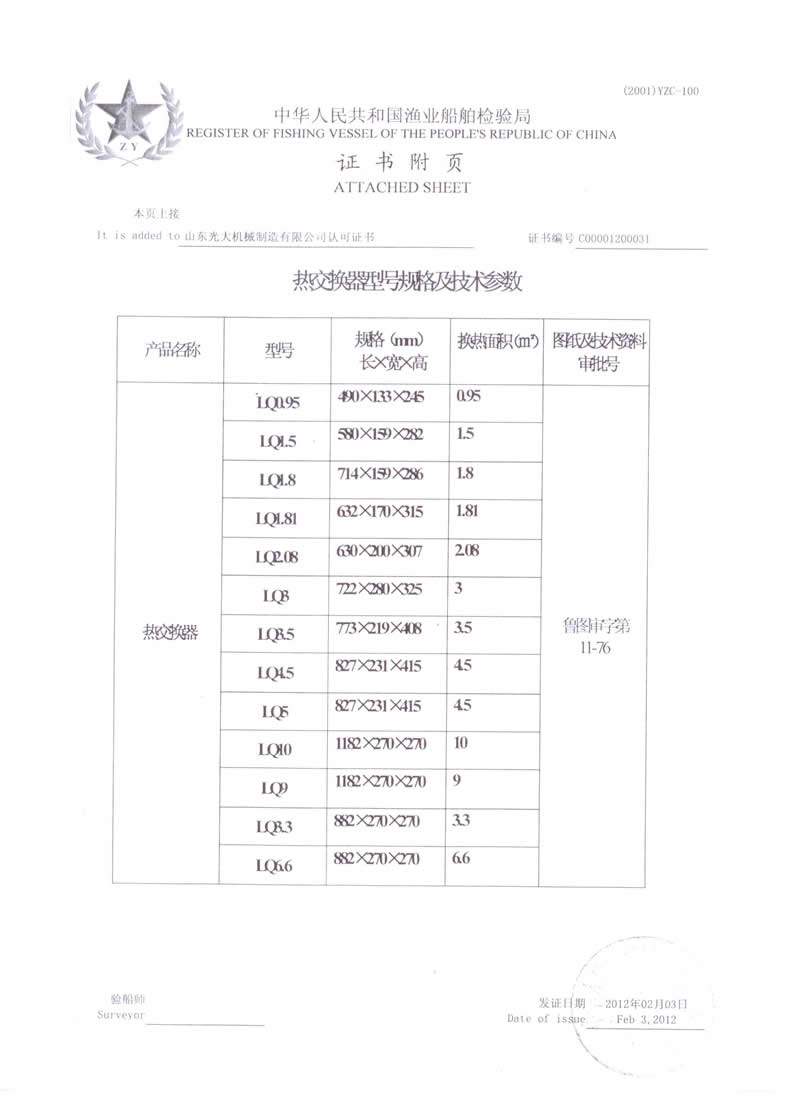 Heat exchanger - marine product type approval certificate